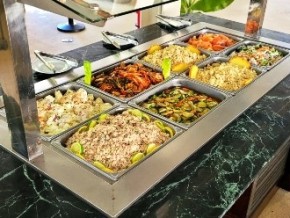 ・ステーキとエビのグリルは1回のみの提供です。その他のお食事はバッフェスタイルでの提供です。