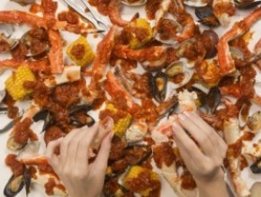 手づかみで豪快に食べるシーフード『クラッキンクラブ』は、ナナズの看板メニュー!
