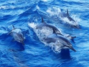 ・野生のハシナガイルカやバンドウイルカなどを観察。