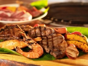 アンガスビーフリブアイ・バタフライシュリンプ・本日の白身魚・チキンマリネチャモロスタイル・ソーセージ
