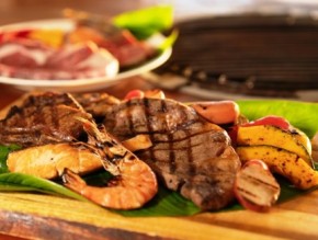 アンガスビーフリブアイ・バタフライシュリンプ・照り焼きチキン・ソーセージ・焼き野菜