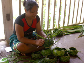 | 大自然の、心地よい風を受けてタロフォフォ川をボートでゆっくり進むと川沿いにチャモロ歴史文化村が見えてきます。そこでは、謎の巨石「ラッテストーン」や村落跡を見学し、火おこし・ココナッツの皮むき・カゴを編み等、昔の生活をリアルに表現する実演を見て知って体験することができます。 |